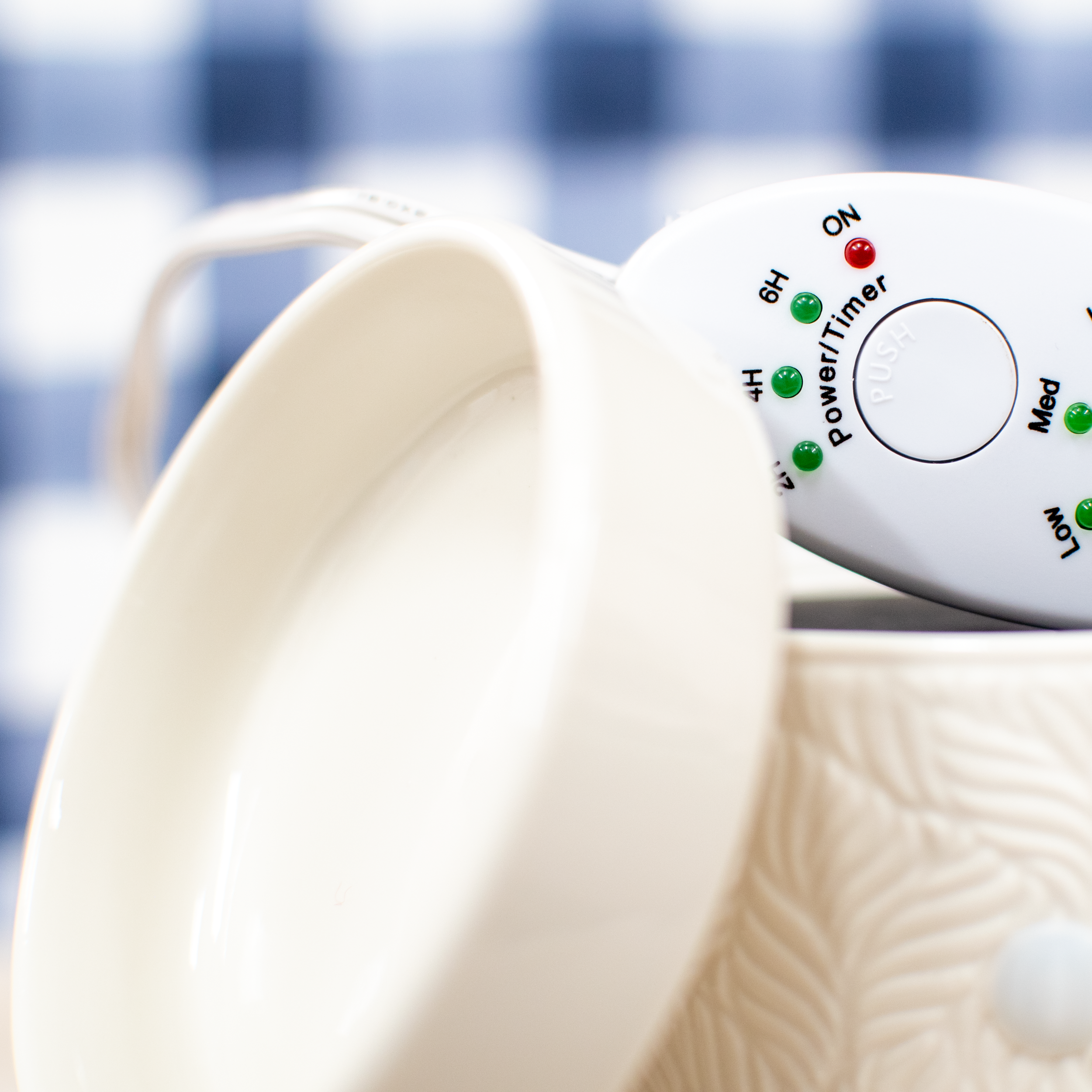 This wax melt has 3 in 1 function, working with wax melts, essential oil, and candle jars with or without a wick. Warmer has an indicator light on the base to let you know when its in use.